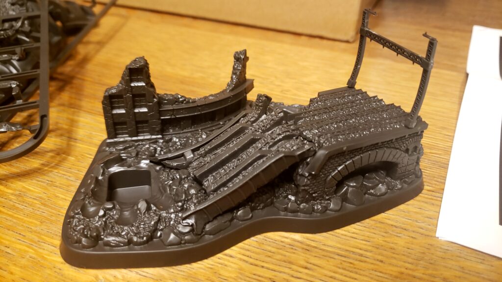 早速、組み立てはじめます。モニターということもあるので、説明書通りの順番で組んでいきます。まずは、台座。破壊された銀座の高架がなかなかリアルに表現されていて、これは塗りごたえがりそうです。