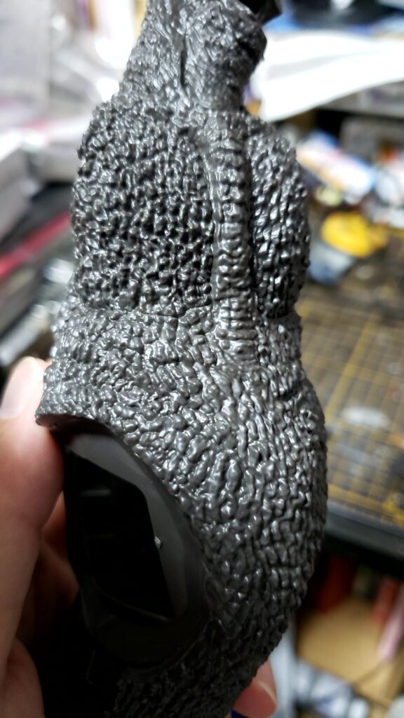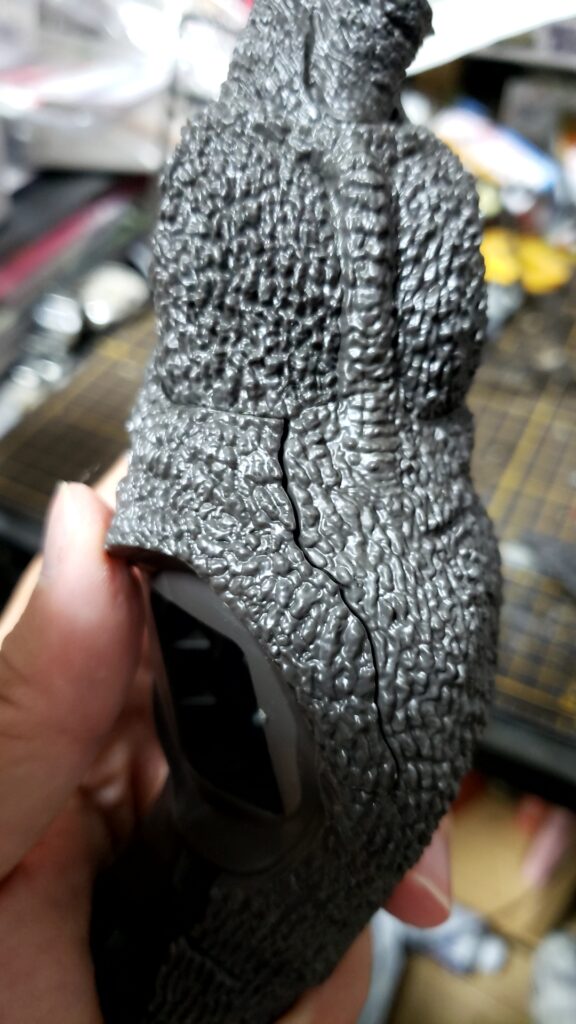 そもそも、この分割がいいですね。最近、こういう形(芯になる部分の表面に、表皮を貼り付けていくタイプの分割構造)が多いですね。これなら、怪獣や恐竜でも合わせ目が目立たなくて良いです。これからの怪獣モデルの新しい形!