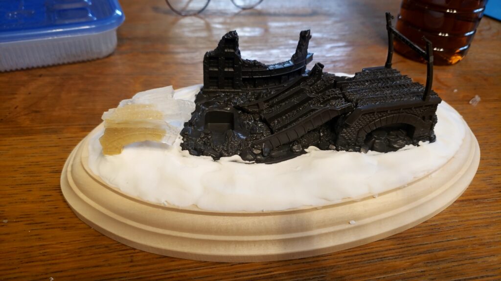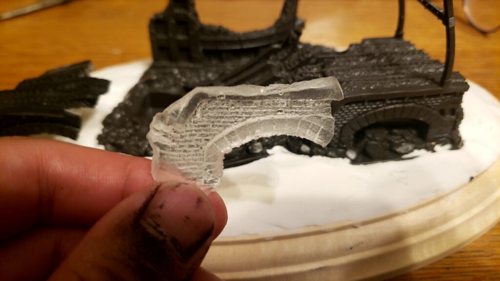 日劇の壁部分も透明レジンを使用しましたが、これに関しては窓部分が透明になるので悪くはありません。ただ、複製があまりにも下手すぎて・・・壁のモールドもだるだるです。(そこは、瓦礫のリアリティでごまかします)
