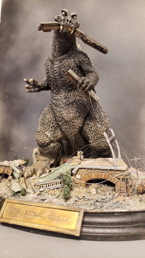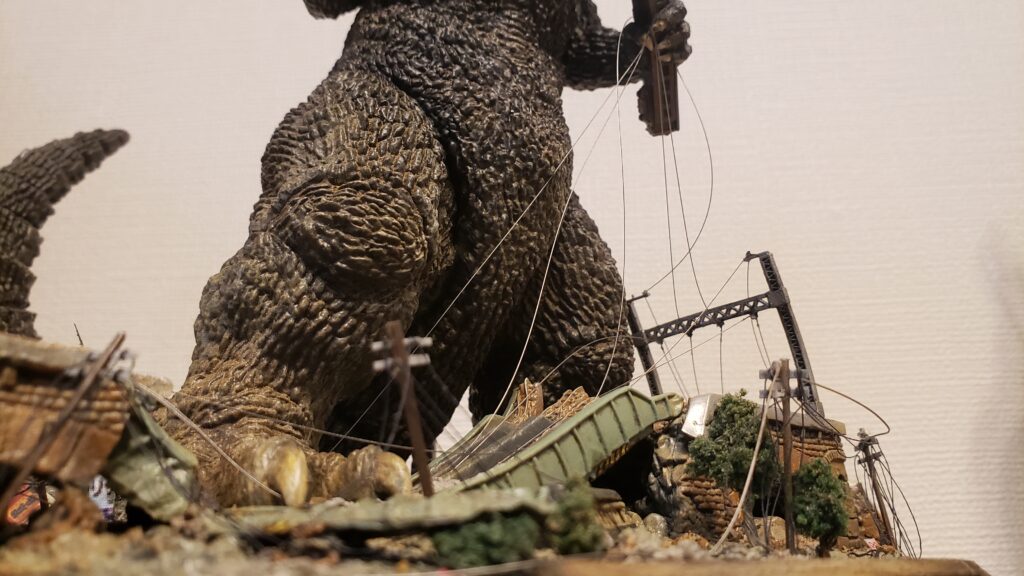 完成です!とても組みやすい上に、かなりのクオリティ。今回のように台座に凝るも良し、ゴジラの造形に一工夫するもよし。もちろん、素組みでもかなり絵になる造形でした。この後、10月17日からは東京ホビーショーにて展示、その後は秋葉原のヨドバシ、梅田のヨドバシと、各地のプロモーションに展示されるとのこと。楽しみです!