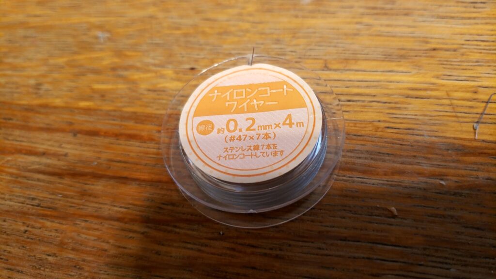架線は、ナイロンコートワイヤーを使用。7本のワイヤーをよって1本にし、ナイロンでコーティングしているワイヤー。表面が凸凹しているので瞬間接着剤もつきやすいので、使い勝手は良かったです。