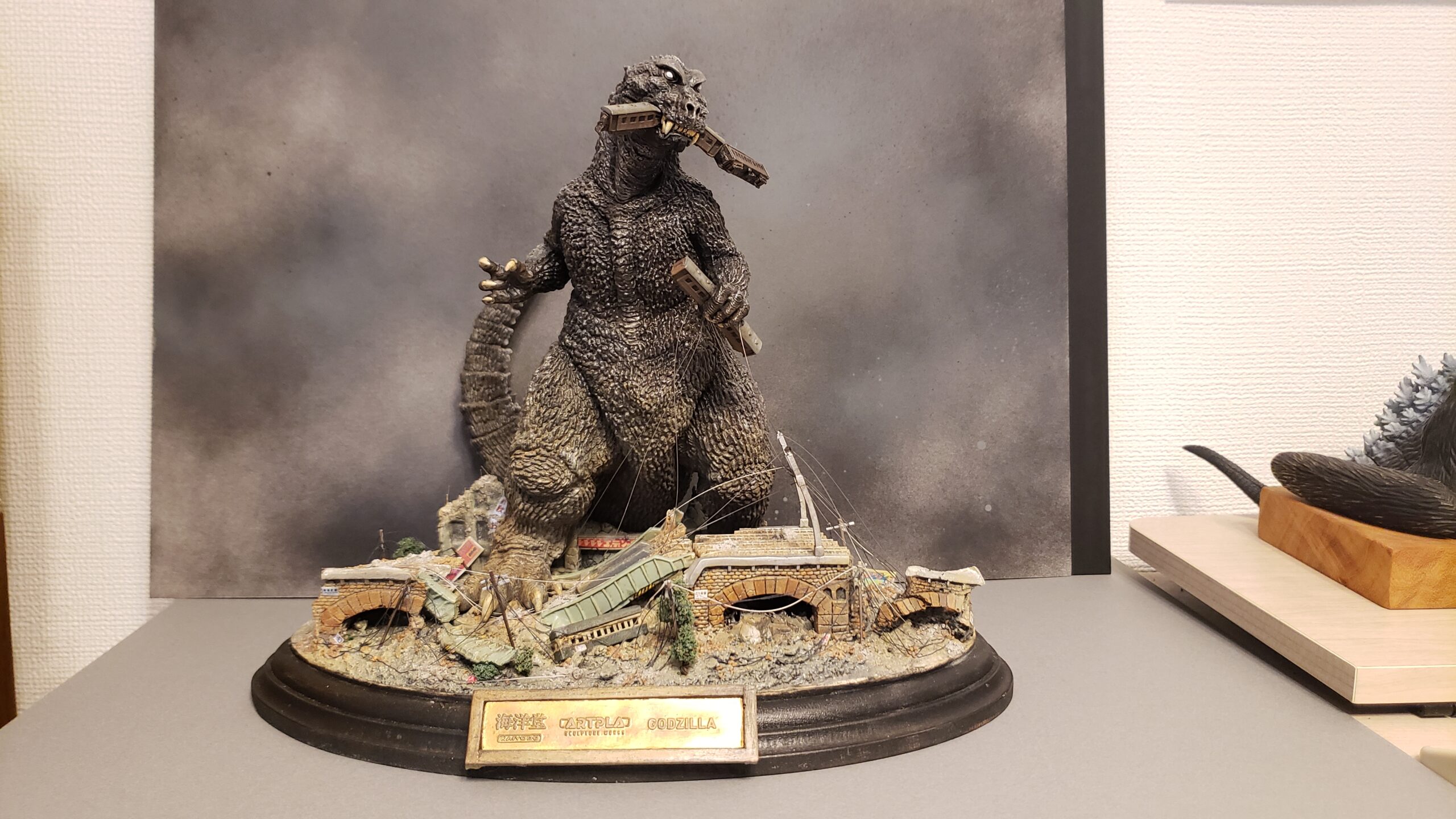 完成です!とても組みやすい上に、かなりのクオリティ。今回のように台座に凝るも良し、ゴジラの造形に一工夫するもよし。もちろん、素組みでもかなり絵になる造形でした。この後、10月17日からは東京ホビーショーにて展示、その後は秋葉原のヨドバシ、梅田のヨドバシと、各地のプロモーションに展示されるとのこと。楽しみです!